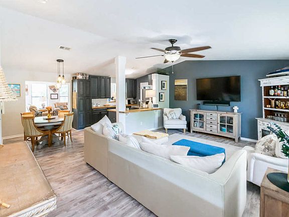 Don't wait to see this adorable 3/2 beach home with a huge private fenced in yard with Jacuzzi! Updates include luxury vinyl plank in main areas, stainless appliances, and wood block countertops. Nice and open floor plan with a huge flex space in the back with lots of windows! There's also an inside laundry area, extra storage space and a one car garage. New AC 2019, reverse osmosis water in kitchen, sprinkler system, storage shed and water softener.
