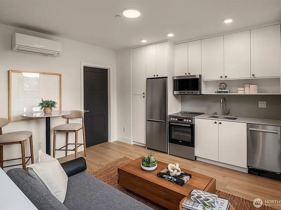 RENT: $1850/month (utilities for water, sewer, and internet not included; no parking provided). One month's rent required as a security deposit. LOCATION: 3608 Francis Ave N, Unit B, Seattle, WA 98103 1-minute walk to Fremont Main Street 5-minute walk to Google, Salesforce, and Adobe campuses 1 5 minutes' walk to bus routes 62, 40, 32, 31, and 28 (easy access to Downtown, UW, and Ballard) AVAILABILITY: Move-in ready anytime. 1-year lease term. APARTMENT DETAILS: Brand-new construction ADU with modern design, full kitchen with dishwasher, fully tiled bathrooms with a bathtub and living room 1 bedroom, 1 bathroom, located in the heart of Fremont. Corner unit on the 1st floor (~358 sqft) Large west- and north-facing windows providing great natural light all day In-unit washer and dryer (brand new) Include AC cooling and heating Fully equipped kitchen with refrigerator, gas range, dishwasher, and microwave Chef's kitchen featuring premium stainless steel appliances, quartz countertops, and designer finishes Unit is unfurnished, photo is for staging rendering Pets: Sorry, no pets allowed. Lease Terms & Renter Responsibilities Lease Duration: 12-month lease minimum. Option to renew upon mutual agreement. Monthly Rent: $1,850 per month, due on the 1st of each month. One (1) month's rent required as a security deposit at lease signing. Utilities & Services: Tenant is responsible for all utilities, including water, sewer, electricity, gas, garbage collection and internet. No parking is provided with the unit. Maintenance & Care: Tenant must maintain the premises in clean and good condition. Tenant is responsible for promptly reporting any maintenance issues or damages to the landlord. No alterations, painting, or construction may be done without written landlord approval. Tenant should regularly clean and maintain appliances, including the washer, dryer, and HVAC filters. Use of Premises: Occupancy limited to the named tenant(s) on the lease. No subletting or short-term rentals (Airbnb, etc.) without landlord approval. Smoking and vaping are not permitted inside the unit or on the property. No pets are allowed in the unit. Move-In Condition: Unit is unfurnished; staging photos are for illustrative purposes only. Tenant agrees to return the property in the same condition as received, minus normal wear and tear.