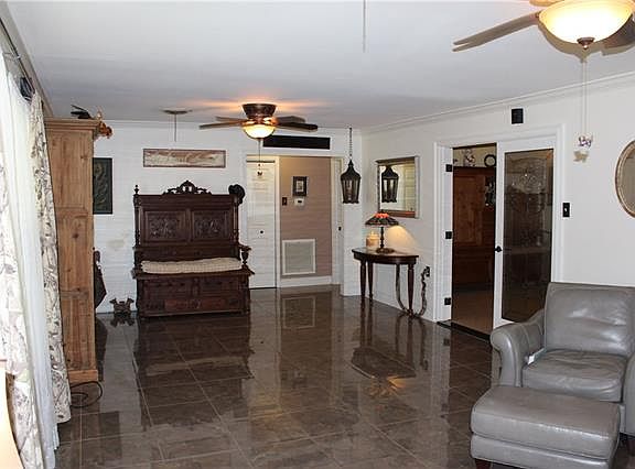 Charming sold brick rancher! 2006 renov. included new underground plumbg, kit & baths, dble. insulated windows & shoring of hm. Living/ Dining rm. combo. w/wall of windows views the front yard. NO CARPET! Ceramic tile flooring, ceilg. fans & lots of windows invite light thru-out. Bdrms. have good closet space. Bonus rm. w/glass doors opens onto rear patio. Master bdrm. w/private bath. 4 yr old AC. Large bkyd. Off st. pkg. for 3 cars & boat! Needs TLC. Sloped sidewalk/rear driveway needs repair! Flood $739.