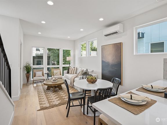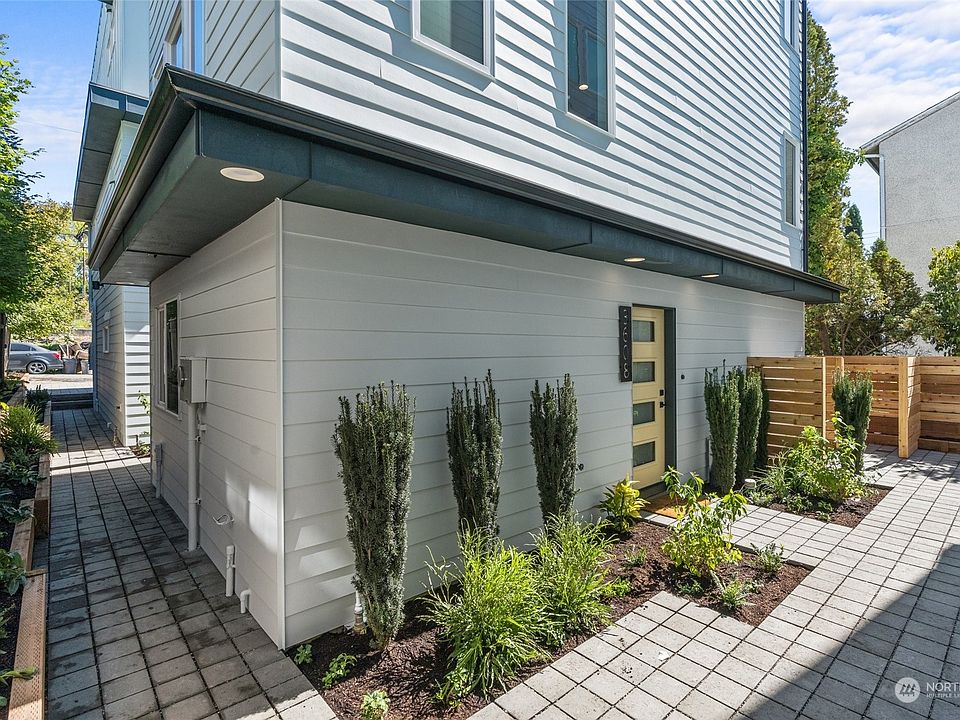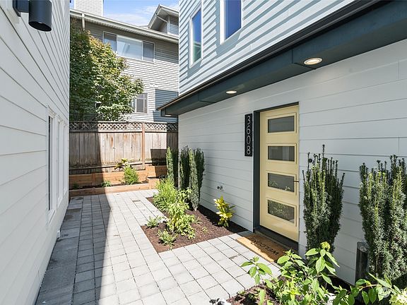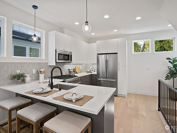 New Fremont Modern Spacious home with tall ceilings on very nice street of  homes, Walk to PCC, Restaurants, Breweries, Coffee & burke Gilman trail ! Wide Plank hardwood floors & no carpet, Large gourmet kitchen with Quart Island, Professional stainless Gas range, undermount sink, Custom quality cabinets, stainless appliances, Designer tile, pendant lights, Custom designed Steel Hand rails ,Oversize Master bedroom & bath, Large closet with organizer , Beautiful Tile shower surround with rain tree & glass doors, Lower lever features 2 bedrooms & full tile bath, Roof deck with City, lake Union & Mt views, Ac/heat mini splits,  off street parking behind with Ev charging.