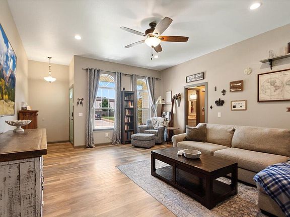 Well maintained, split bedroom plan with nice updates. Unique open floorplan, vaulted ceilings, see thru fireplace open to kitchen dining area as well. Lots of great storage, walk in closets in each room, large laundry room, great kitchen. Primary bedroom is an oasis separate from the living area, large closet, jetted tub and walk-in shower. Covered patio overlooking fenced backyard. Association includes pool (new in 2022), walking trails, playground. Great access to Ozark North Elementary. NEW HVAC 2024, scheduled for NEW roof and gutters soon.