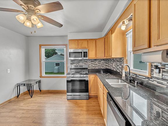 Welcome home to this charming 3BR/1BA Cape Cod bursting with character and updates! Sunlight pours into the cozy living room through a large picture window. The spacious eat-in kitchen shines with stainless steel appliances, tiled backsplash, and room to gather. Two main floor bedrooms feature gleaming hardwood floors, while the upstairs retreat offers privacy and mirrored closet doors. Enjoy a finished lower level with epoxied floors. Step outside to a backyard oasis with firepit, 1.5-car garage & extra parking!