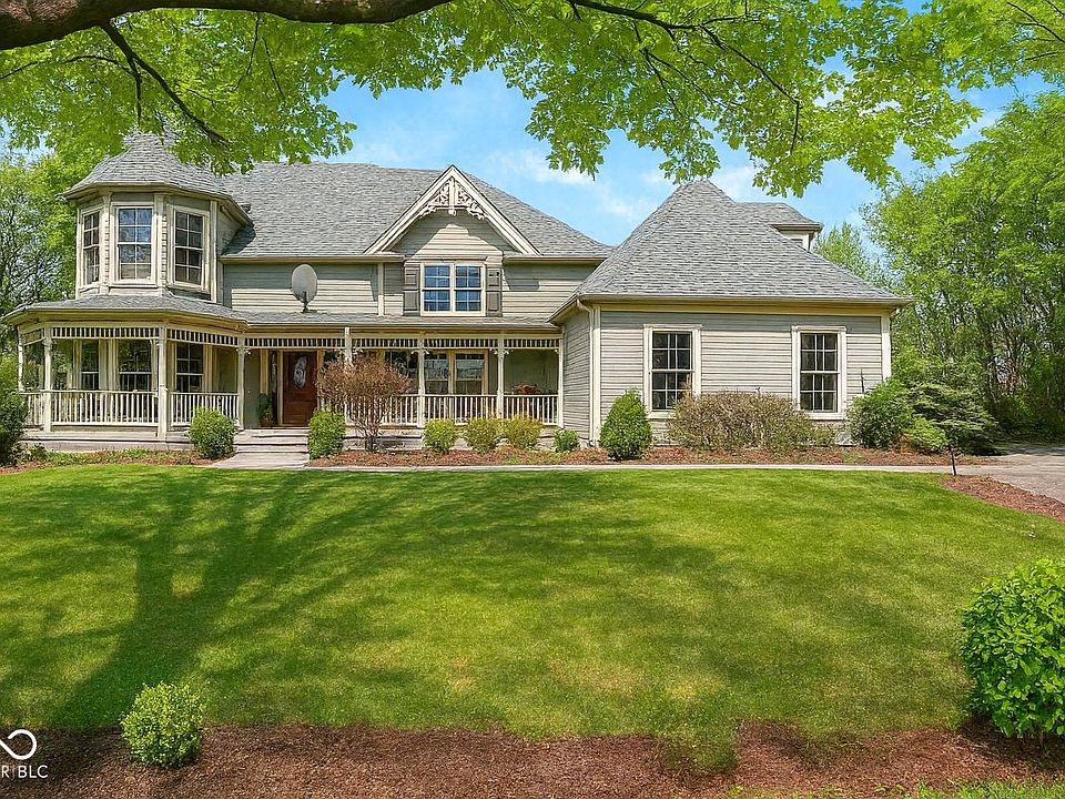 FRESH PAINT! Look at these pics! Step into a masterpiece of architectural splendor with this stunning Queen Anne Painted Lady Victorian, a true embodiment of elegance and grandeur. Spanning 6,000 square feet, this estate seamlessly blends historic charm with modern conveniences, offering an unparalleled living experience on 1.3 private, wooded acres. From the moment you arrive, the stately wraparound porch with Azek decking and exquisite vintage wood detailing invites you to soak in the tranquility of the picturesque surroundings. Step inside to be greeted by a breathtaking two-story entrance, where a stunning open staircase and gleaming hardwood floors set the tone for the sophistication within. Designed for both grand entertaining and everyday living, the expansive open-concept living room and chef's kitchen create a seamless flow, anchored by one of two masonry gas fireplaces. The formal dining room is perfect for hosting elegant gatherings, while the butler's pantry adds a touch of old-world refinement. A large home office with built in bookshelves offers a quiet retreat for work or study. 5 generously sized bedrooms and 4 & 1/2 baths provide ample space, with luxurious touches throughout. The walk-out basement, complete with a pool table, fresh paint, wet bar, and spacious living room, offers an entertainment hub, while abundant storage ensures effortless organization. Outdoors, the estate continues to impress with an in-ground pool and hot tub, ideal for relaxation and recreation. The three-car garage with a large bump-out provides space for vehicles and hobbies, while the private drive enhances exclusivity. Built to stand the test of time, this home boasts Anderson double-hung windows, Rhino Shield siding, and exceptional craftsmanship at every turn. A rare offering of historic beauty and modern comfort, this meticulously maintained estate is ready to welcome its next discerning owner. Experience the charm, elegance, and serenity of this remarkable home