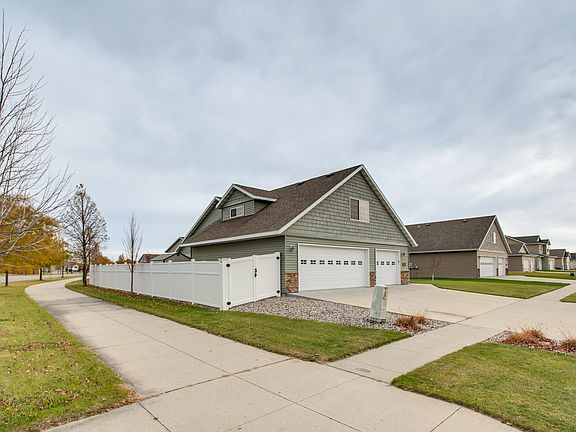 Enjoy low-maintenance living in this beautifully crafted slab-on-grade home, offering 3 bedrooms and 3 bathrooms in an open-concept layout. The home showcases custom cabinetry throughout, including additional built-ins in the dining/flex area. The kitchen features beautiful cabinetry, a gas stove, a walk-in pantry, and a spacious island with seating for up to nine. The living room offers new LVP flooring, a cozy gas fireplace, and expansive windows that fill the space with natural light. The primary suite is located on the main level and includes a spacious bathroom with double sinks, a walk-in shower, and a large walk-in closet with built-in shelving. The laundry room is conveniently located just off the primary suite. A second bedroom and a full bath complete the main level. The second level is a versatile bonus area that includes a bedroom, loft, and ¾ bath - perfect for guests, hobbies, or a private office. Ample closet space is found throughout the home. The finished, heated three-stall garage features an epoxy floor and a floor drain. Outdoors, enjoy a fully fenced, landscaped yard with a sprinkler system and mature plantings. A large paver patio with a pergola provides the perfect space for outdoor relaxation and entertaining. Schedule your showing today!