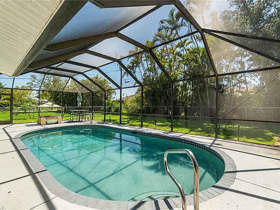 NEW ROOF, POOL, NO FLOODING IN ANY STORMS, PRIME LOCATION! This spacious and beautifully maintained 4-bedroom + den pool home offers nearly 2,200 sq ft in an established, centrally located Cape Coral neighborhood. The open layout features a large family room, formal dining area, and bright breakfast nook off the kitchen. Enjoy vaulted ceilings with skylights, abundant natural light, and a kitchen with white cabinetry, stainless steel appliances, and a large pantry. The primary suite includes a walk-in closet and a luxurious bath with dual sinks, granite countertops, and a huge tiled walk-in shower. Relax outdoors in the screened lanai with ample seating around the heated pool along with extra room in the backyard for entertaining. This home has never flooded in any storm and is ideally located near shopping, dining, and bridges for easy commuting.. **THIS PROPERTY QUALIFIES FOR A 1% LENDER INCENTIVE IF USING PREFERRED LENDER. INQUIRE FOR MORE DETAILS.**