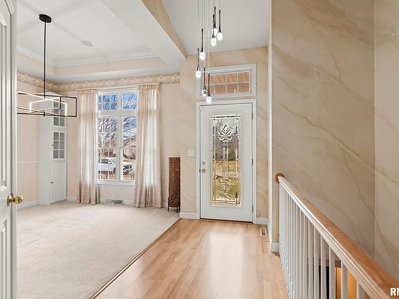 Great curb appeal is this well-maintained 3 BR 2.5 bath Ranch home in Panther Creek West. Fresh paint & updated lighting fixtures are just some of the recent updates. 11' ceilings highlight the entry & living room Plus a skylight for additional natural light. Built-in cabinetry in dining room for storage. Plantation shutters on most of the windows. Spacious primary suite with walk-in closet and primary bathroom features 2 sink vanity, jetted tub & separate shower. Kitchen features fresh paint, white cabinets, granite countertops & new backsplash. New gas range/oven with all the extras Plus new exterior vented exhaust fan. New dishwasher. Lower level features rec room & 1/2 bath plus ample storage space. Fenced backyard with patio w/gas hookup. Attached garage features an 3rd space for an extra car, golf cart, workshop, or storage. Located in the Chatham school district. New roof 2022, gutter guards 2024.