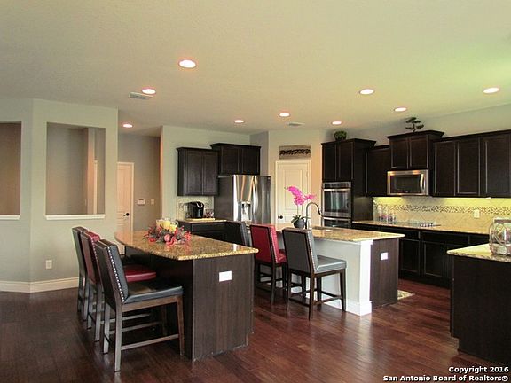 An Entertainer's Dream! You won't find this kitchen elsewhere-double islands, double ovens, stainless appliances, smooth cooktop & granite counter tops. Beautiful open floor plan; also has guest suite downstairs, huge game room, second loft area (that could be 5th BR), upstairs laundry room and a spacious, split Master Suite. Did I forget engineered hardwood floors, oversized tile in all wet areas, gorgeous mosaic tile accents, full sprinkler system and a covered back patio. See the rest, buy the best!