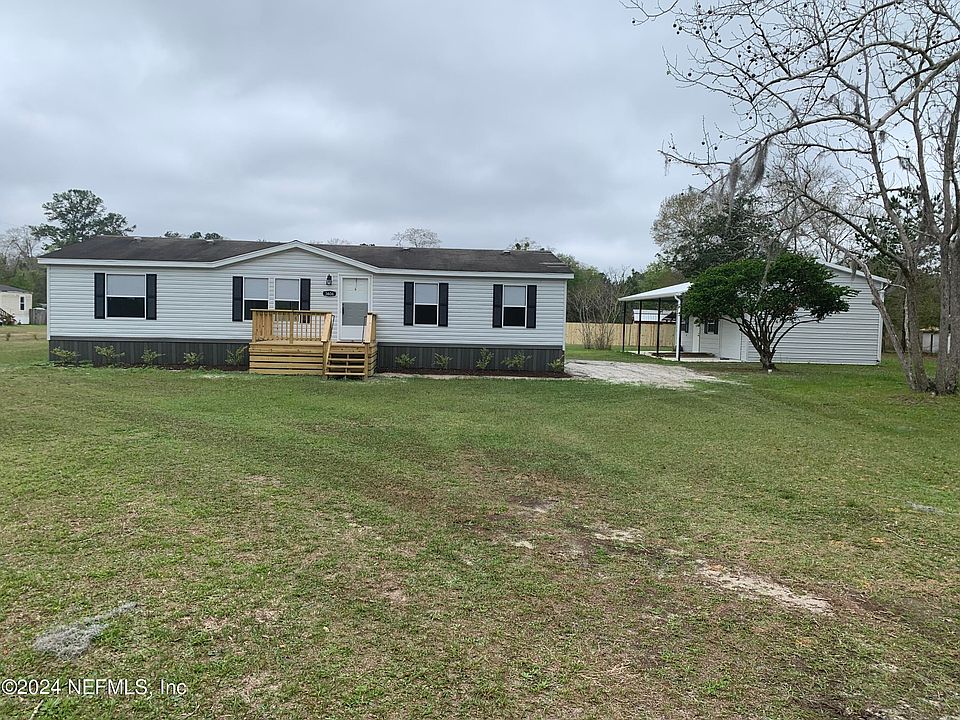 BACK ON MARKET! Experience the best that Green Cove Springs and Middleburg have to offer, conveniently nestled on Thunder Road! This rural home has all the modern luxuries on a one+ acre lot. Discover a fully refurbished 2016 manufactured home with 3 bedrooms, 2 bathrooms, and a flex space, offering abundant room for leisure and socializing.