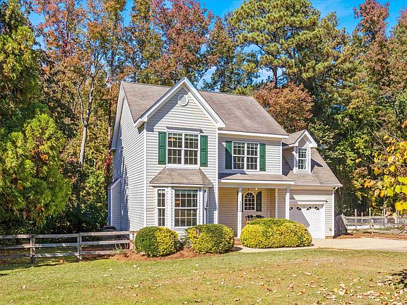 Lovingly maintained home on a 1.12-acre lot, quiet cul-de-sac street, no city taxes & conveniently located to Raleigh, Cary & Apex. Neighborhood has no active HOA. From the welcoming front porch, step inside to an inviting entry way & dining room w/ bay window. Offering attractive neutral colors, eat-in kitchen features ample cabinetry, granite counters & a light filled breakfast area w/ laminate flooring throughout. Large family room w/ gas log fireplace & new carpet offers plenty of room for entertaining. Also on the main floor is a powder room and a 1-car garage. Retreat to 2nd floor where you will find a large owner’s suite, w/walk-in closet, en suite bath w/ dual sink vanity, garden tub & separate shower. 2nd floor also includes a second full bath, 2 add’l bedrooms, laundry closet & large bonus room w/ closet, that offers plenty of room for the entire family & guests. Features include freshly painted interior & deck, new carpet, newer hvac. Enjoy blissful evenings on quiet & secluded deck. From the tree lined yard to the sprawling side yard and gardening area, this home provides endless options for enjoyment!