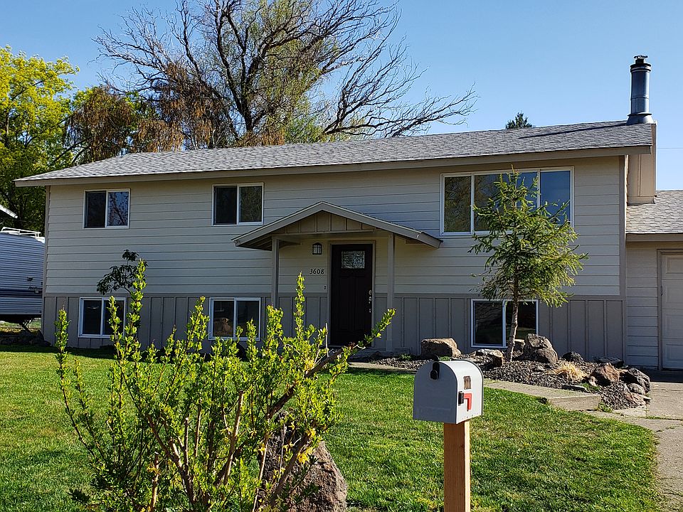 Motivated to sell, make offer! The house sits on a quiet side street in a neighborhood full of lovely people.The exterior has new siding with an attractive two tone paint with new landscaping. All windows have been updated with vinyl windows as well as new doors, including the garage. The lot has a huge back yard and concrete RV parking. The back area is fully fenced and has a good sized storage shed. In the corner of the back yard is a big raised garden area. To reach the back yard you can go out an 8 foot french door and down a grand staircase that leads to a large concrete patio, big enough for large family events. Stepping inside you will find bamboo flooring and an open concept living area. A beautiful brick fireplace makes the house extra cozy on the cool nights. The kitchen has all new stainless appliances and granite counter tops with a classy tile back splash. The upstairs bathroom features a tile shower with a glass tile cascade. Three good sized bedrooms complete the upstairs level. Downstairs you will find another large living room and two very large bedrooms. As a bonus there is a big storage room or office, not quite big enough for a bedroom. The downstairs bathroom has a stylish glass shower and new vanity. And finally an over-sized laundry room completes the lower level.