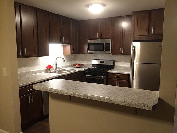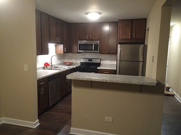 Great rental condo in Glenview close to everything! Gas heat and hot water included in the rent. Just finished completely renovating this 2 bedroom 2 bath condominium. Includes new 42in espresso cabinets with new stainless steel stove, refrigerator, dishwasher and micro. The kitchen has lots of extras including beautiful herringbone design backsplash and open concept and breakfast bar. The bathroom has new ceramic floors and great espresso vanities with new mirrors, lighting and toilets. The flooring is a gorgeous dark hickory laminate flooring that makes this condominium stand out from the rest! New baseboards and the many details make this a unit you would be proud to call home. DO NOT EMAIL - Phone Calls Only! 1 Year lease. Includes 1 carport space parking Please call only DO NOT EMAIL **Illinois Real Estate Licensee Owned