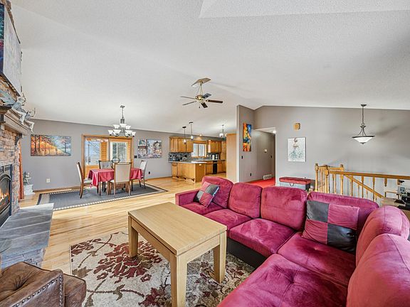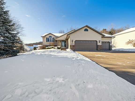 Beautifully maintained 3-bedroom, 2-bath home with a tranquil backyard! Step inside to a vaulted main level which is filled with natural light, highlighting the stunning hickory wood flooring. The gas fireplace with stone surround is the focal point in the spacious living room, which flows seamlessly into the large dining area and vaulted kitchen. The kitchen offers ample cabinet and counter space, a tile backsplash, and a breakfast bar. Unwind in the charming three-season porch, where views of the peaceful backyard create a serene escape! The expansive owner’s bedroom is located on the upper level and is complete with a walk-in closet. A full bath on the main level adds to the home’s functional layout. Downstairs, the walk-out lower level offers a cozy family room with another gas fireplace and easy access to the patio, along with two generously sized bedrooms, a ¾ bath, and spacious laundry room. Additional highlights include a partially fenced backyard, six-panel doors throughout, in-floor heat upstairs, and a fiber optic internet connection recently added to the neighborhood. The heated 3-stall garage provides ample storage, making this home as practical as it is inviting! The HVAC system was just replaced less than six months ago! Conveniently located 2-5 minutes from the shopping mall, dining, banks, schools and just 10 minutes from the University of Wisconsin-Eau Claire and downtown!