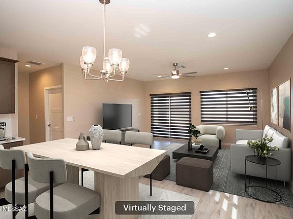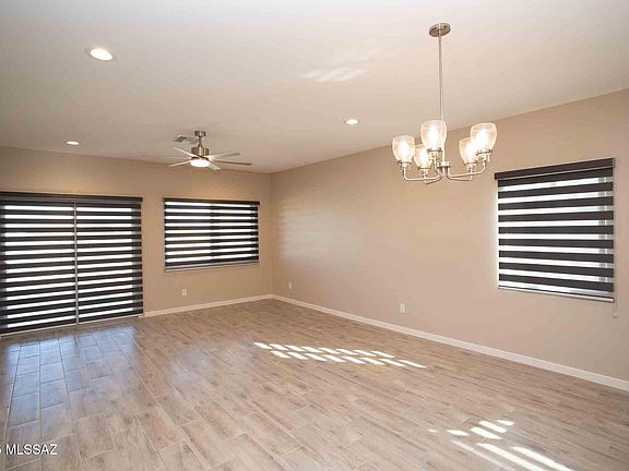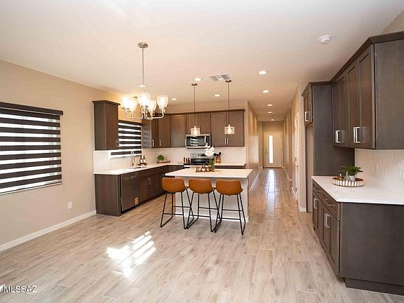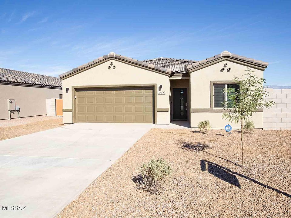 Beautiful Brand-New Modern Home that offers a spacious & inviting floor plan on LARGE LOT with modern finishes, tile flooring throughout & NO HOA! Enjoy the spacious backyard w/full length covered patio, great for entertaining, enough space to add a pool & w/10 ft double side gate. Our last QUICK MOVE IN READY! Easy access to I-10 & the ''The Loop'', a system of paved paths perfect for walking, running & biking. Plus, the home is located on a lighted street recently repaved. The beautiful interior & thoughtful design includes kitchen w/island, 40'' upper cabinets, quartz countertops, backsplash, modern window blinds, stainless-steel appliances & sleek fixtures offering a perfect blend of modern elegance & appeal. High ceilings. Modern primary bathroom featuring 12x24 Italian porcelain tile shower surround tiled from floor to ceiling, glass shower door, 10-inch raincan showerhead, double square undermount sinks, quartz countertops, medicine cabinet, barn door & walk in closet. Backyard with mountain views, decorative rock and large covered patio. Built for Efficiency & Comfort: 2x6 exterior walls (33% thicker than standard construction) for enhanced durability and insulation. Soundproof insulation in interior walls for a quieter living experience. Advanced spray foam thermal shield for energy efficiency and year-round comfort. Smart thermostat & camera doorbell for modern convenience. Garage with Wi-Fi Enabled automatic door opener with 2 remotes and keypad for easy access. Garage prewired for a 220-volt outlet ready for electric vehicle. Ceiling fans in bedrooms, great room and covered patio. LED lighting. Front yard landscaping with auto drip irrigation. Offering a 2-10 New Home Builder Warranty for peace of mind. The highly anticipated Mosaic Quarter sports & entertainment district is just 2.3 miles away, promising exciting future amenities. Call Agent for more details & incentives. Don't miss the chance to own this beautiful new home!