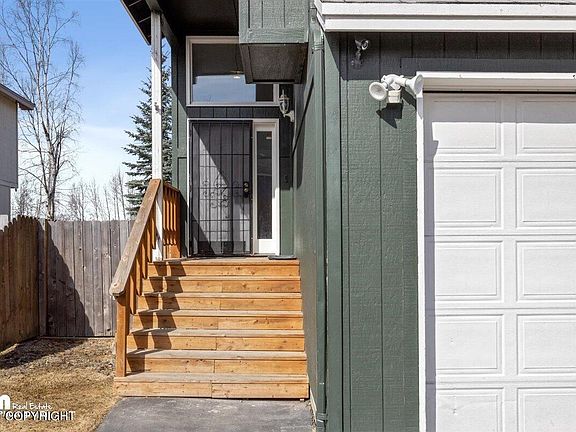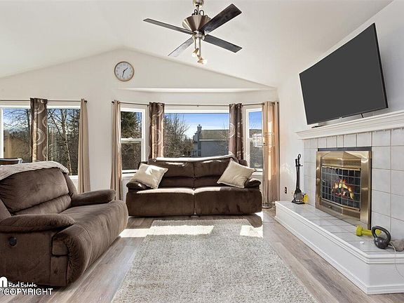 Beautiful family home w/ private fenced yard close to U-MED & fast commute to JBER! Soaring vaulted ceiling & large windows allows plenty of natural light and mountain views. Spacious kitchen with plenty of storage, flows easily into living/dining areas with beautiful easy-care flooring. Master bedroom with private bath & double closets. Large 2 car garage offers plenty of space for cars and toys.