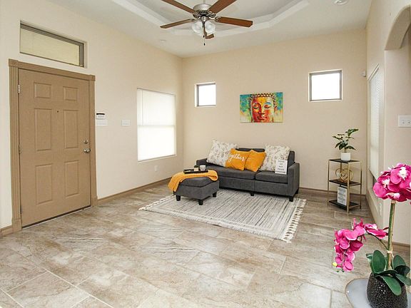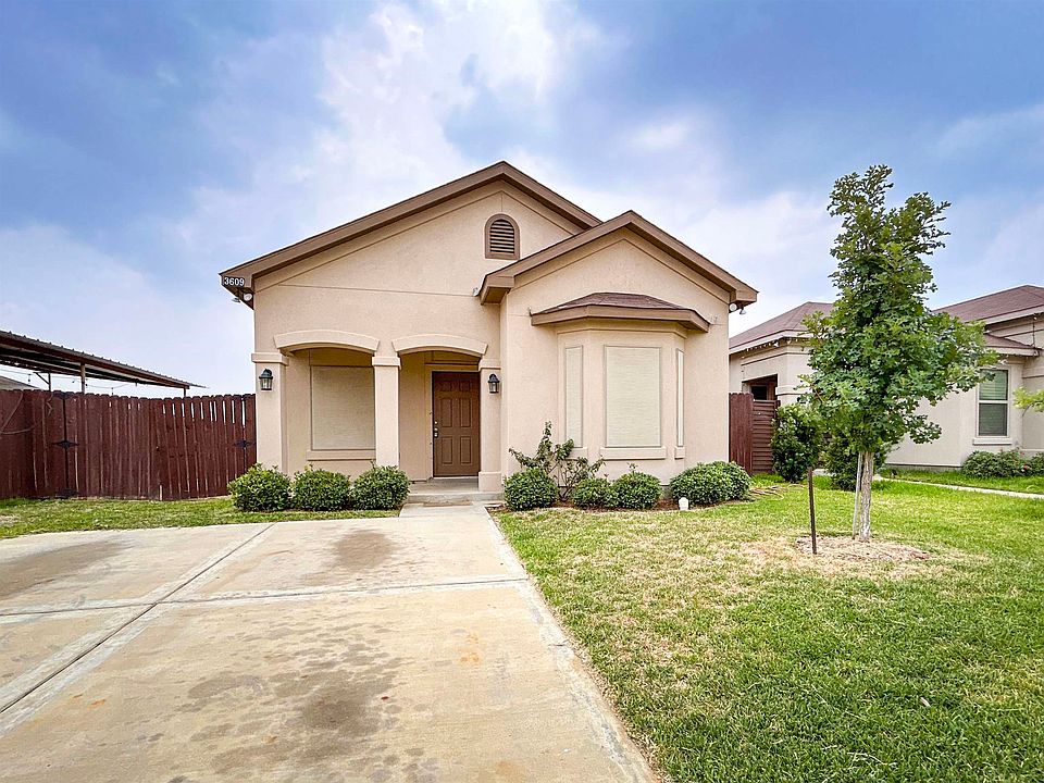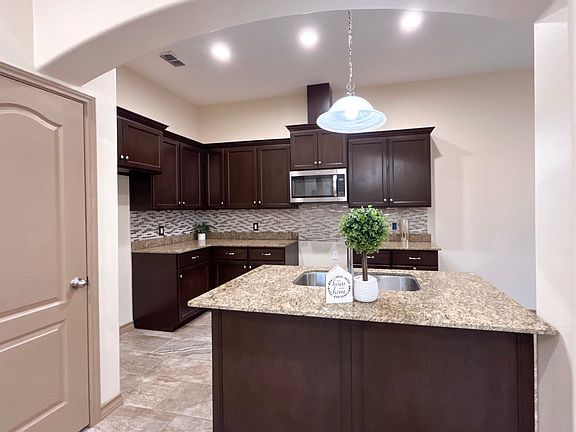 Built in 2019! Quick access to Lomas del Sur, Ejido & Loop 20! Perfect Starter Home! 3 Bedrooms and 2 Bathrooms! This home features a side Covered Patio, kitchen island, granite countertops, tile flooring throughout! A must see!