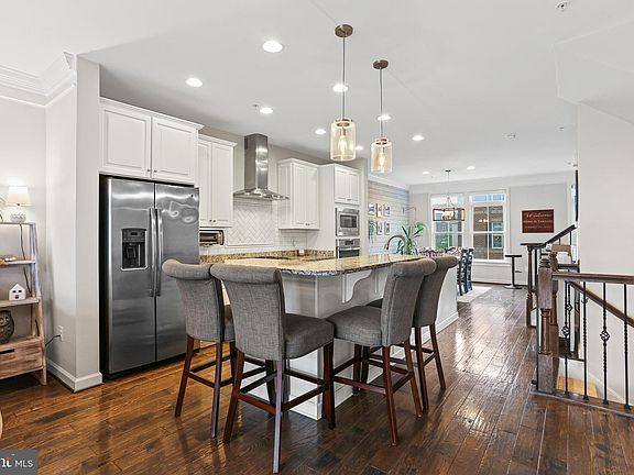 Welcome to this 3 Bedroom, 2.5 Bath, 2 Car Garage, Like-New Townhome in sought after Villages of Urbana! This home is located in one of the most convenient yet private sections of the community complete with green space and tot-lot! Enter the brick front home into the Foyer to find a newly added home office, half bath, and access to the two car garage, all on the Entry Level! Continue to the Open Concept Main Level featuring Gleaming Hardwood flooring, Gourmet Kitchen with an Oversized Island with Breakfast Bar and pendant lighting, Granite Countertops, Subway Tile Backsplash, Gorgeous White Cabinets, Gas Cooktop with Stainless Steel Range Hood, Wall Ovens, Stainless-Steel Appliances, and expansive Kitchen Pantry. Continue to the Bright Living Room with deep crown molding, a custom accent wall of gorgeous tile with built-in shelving and storage underneath, and gas fireplace; two sets of French doors with Transom windows provide plenty of natural light as well as access to the rear sitting deck. Adjacent to the Gourmet kitchen on the front side of the home is the Dining Room with a Custom shiplap accent wall, and a brand new built-in bar complete with wine fridge, Quartz counters and subway tile backsplash, perfect for entertaining friends and family! Continue upstairs to find the Primary Bedroom with plenty of natural light, deep crown molding, two large Walk-In closets and attached Primary Bath with double sink Vanity, large Separate Shower with dual Rainfall shower heads and bench seating, ceramic tile flooring and water closet. Completing this level are Two additional sunlit Bedrooms with ample closet space and a Full Bath with linen closet, plus a convenient laundry closet with custom barn doors offering convenience and space for the entire family. This gorgeous home is within walking distance to shopping, dining, library, district parks, community pools, tennis and pickleball courts! What are you waiting for? Schedule your showing today!!