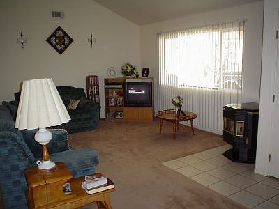 This 3 bedroom 1.75 bath home is only 14 years old and move-in ready all on over 3/4 of an acre and zoned for horses. Large covered patio in front and one in back, lovely planter boxes and easy care landscaping. the Great Room includes the living and dining rooms and the kitchen. Living room has a pellet stove and vaulted ceiling & large windows overlooking the patio. The kitchen is lovely with breakfast bar and lots of counter space, frig, dishwasher, microwave, g/d. Wide hallway with built-in wood cabinets for lots of storage. Two guest bedrooms and a full guest bath, plus a very large master bedroom and 3/4 bath and walk-in closet. 3-car attached garage is insulated and dry walled with washer dryer hookups and plumbed for a water softener. Frig in garage is included. In the back of the property there is a RV pad with all utilities, a small shed, grape vines, plum, peach, apple and pomegranate trees. Lots of privacy but close to town. - Last updated: Friday November 1st