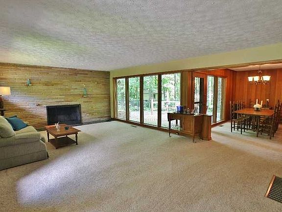 1950's ranch charmer. Original details kept in pristine condition. 3 bdrm, master bdrm has full bath & small room that could be walk-in closet or small office space. 2 full bths, great rm w/ fireplace and wall of windows overlooking wooded lot, dining rm with door to wood deck, kitchen with lots of counter space & pass through to dining rm. Breakfast nook, unfinished bsmnt walks out to driveway, 2 car attached garage & 1 car detached garage. All on 1.5 acre, heavily wooded lot w/ adjacent creek.