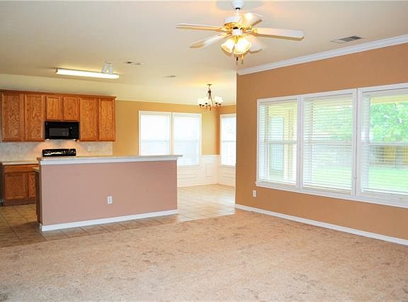 Sundown Ranch move-in ready home: new paint and carpet. Open floorplan, split bedrooms, 2 in blinds. Spacious foyer w cathedral ceiling, huge den has fireplace w gas starter, breakfast bar, large dining area, enormous master bedroom w window seat and plenty of sunlight. Generous master bath has separate tub and shower, two sinks, long counter top, and large walk-in closet. Covered back patio and large yard. Short walk to community pool and lake.