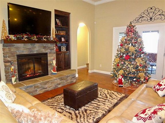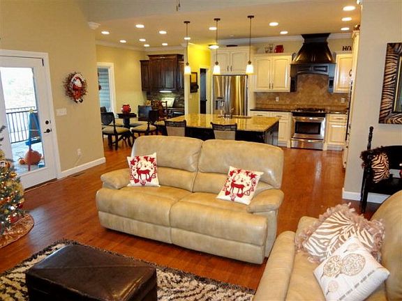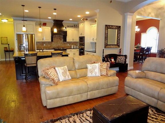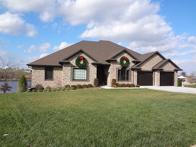 Almost Brand New Brick Ranch loaded with space. Beautiful Hickory hardwood floors. Massive Great Room w/ Fireplace. Huge Stamped concrete screened deck opens to a great view of lake. Formal Dining Room for special gatherings. 4 Bedrooms plus Office w/ glass French doors. Jack N Jill Bath perfect for children. Open Kitchen w/ stainless steel appliances, gas stove & trash compactor to name only a few specialty items. Large family style island plus Dining area. Quality granite countertops, butlers pantry plus wine cooler. Luxury Master Bedroom w/ 2 walk-in closets plus stylish custom tile shower & oval soaking tub. Extra large Family Room down w/ bath & extra 5th Bedroom. Plumbed for wet bar. Vault Room for security items. Spacious 3rd Garage. Specialty artistic ceilings throughout. Central vac. Security system. Located in the Blair Oaks School District. Why build when its here all finished and ready for possession. Absolutely a stunning custom home w/ lake view. Swing set doesnt stay.