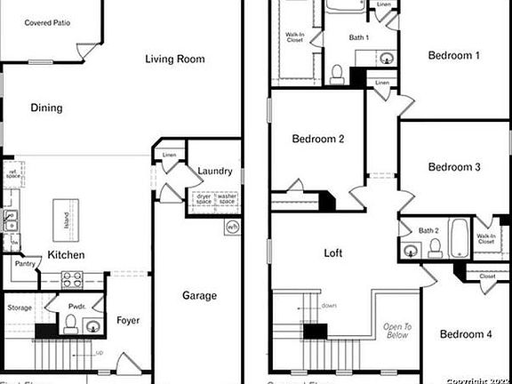 - One Living Area, Liv/Din Combo, Eat-in Kitchen, Kitchen Island, Pantry, Game Room, Utility Room Inside, All Bedrooms Upstairs, Open Floorplan, Walk-In Closet(s), Programmable Thermostat