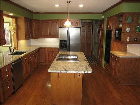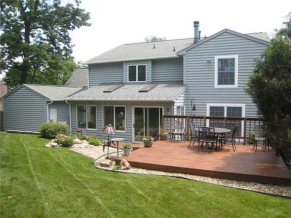 Prime NE central location, with wooded .43 acre (+/-) yard & well maintained two-story with quality features throughout. Impressive floor plan, wood & tile flooring & formal dining room. A double sided brick fireplace serves both main floor great room & gourmet kitchen with granite counter tops, pantry, stainless steel appliances & pendant lighting. The kitchen opens to the delightful vaulted sun room with tile flooring, newer skylights & slider door to deck, patio with brick privacy wall & luscious landscaped yard. Dreamy master suite with private bath, double sink granite vanity, walk-in closet & garden tub with tile surround. In the large lower level you'll find billiard/family room with wet bar & second fireplace, sports room/den, hobby room & tons of storage. Tiled main floor laundry with cabinets, most all new windows, solid 6 panel doors & irrigation system. Perfect place to call home!