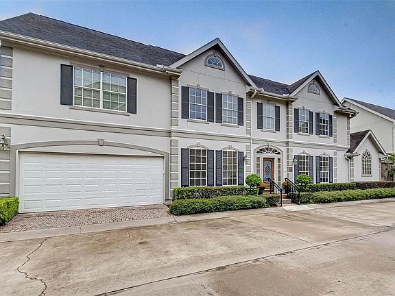 Gorgeous 2-story patio home in tranquil, gated community of Timberside Circle in Houston, TX. Vaulted ceilings on first floor of home! Stylish study with glass-paned French doors located to right side of front entrance, and elegant formal dining room located to left of front door. Large island kitchen has granite countertops, stainless steel appliances (remaining in the home) and gas range. Large family room is a breathtaking room with floor-to-ceiling windows that bathe room in relaxing natural light! Family room gas-log fireplace is a wonderful focal point! First floor carpeted master bedroom is spacious with floor to ceiling windows and luxurious bath. Master bath has double sinks & vanities, separate soaker tub, and glass-enclosed shower. Engineered hardwood, tile & carpet flooring throughout the home. Three carpeted bedrooms located on second floor, as well as a gameroom in common upstairs area. This home is beyond gorgeous, make an appointment to view today! DID NOT FLOOD!