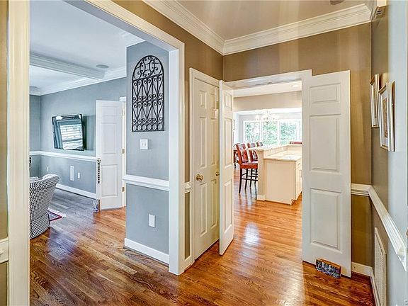 Spacious 5 bedroom/3.5 bath in convenient Short Pump location. Recently renovated throughout. Better than new. Rare finished basement. Hardwood floors on first floor. Family room has fp w/mantle, built-ins, plantation shutters, built in surround sound & coffered ceiling. Living room & dining room have nice moldings & plantation shutters. Kitchen has marble countertops, cabinet dishwasher, gas cooking, glass front cabinets, pantry, breakfast bar & more. Eat in area has vaulted ceiling, skylights & access to back deck. Back deck is great place to relax...glass of wine or cup of coffee...very private. 1/2 bath & laundry room complete the first level. 2nd level has owners' suite w/ tons of closet space, master bath w/ marble floor, double vanity, claw foot tub, separate shower, vaulted ceilings & skylight. 3 more nice size bedrooms (one with walk up attic access) & full bath complete the 2nd level. Lower level has huge rec room (with walk out access), 5th bedroom, full bath & garage access. Zero step entry into basement area of home. Nice curb appeal w/ covered front porch & situated on a private lot. Quality new carpet & flooring throughout.