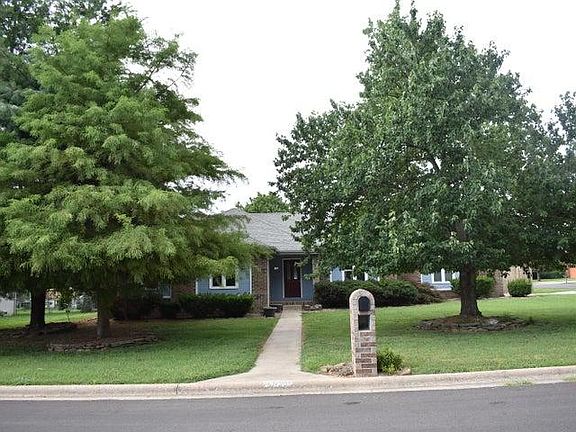 Kickapoo! Sitting on a spacious corner lot with mature trees, this all-one-level house features bamboo floors in the living room, hallway and master bedroom. There are double tray ceilings in the living room and master bedroom, newer double-hung tilt-in windows throughout, and both formal and casual dining. A new door leads out to a fully fenced backyard.