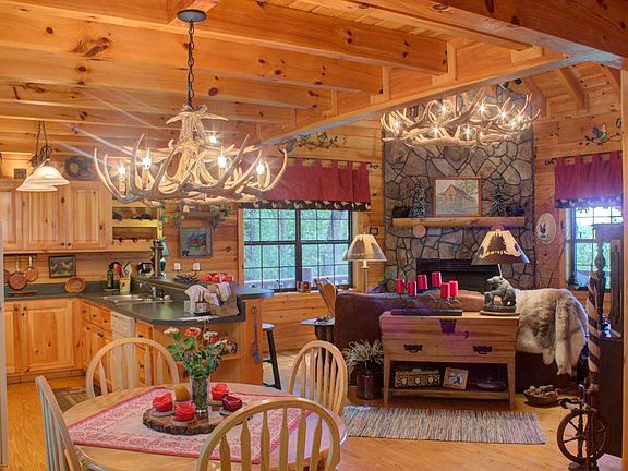 Steps away from USFS land that borders Lake Blue Ridge, this immaculate and extremely well maintained 2,574 sq. ft. 3BR/3BA quality built solid log home has NEVER BEEN RENTED - ONE OWNER and is on a very private 1.49AC parcel with EXCEPTIONAL YEAR ROUND LONG RANGE MOUNTAIN VIEWS! This one has it all - location, view, high end quality furnishings (some from Jerry's Mountain Furniture), level gently sloping beautifully landscaped lot with multiple garden spots, outdoor fire pit, walking paths and seating areas around the property. Room to add a garage. Termite bond in place and HVAC serviced every 6 months! All paved roads except last 2/10 of a mile on a county maintained gravel road. Just down the road is level and easy USFS access to Lake Blue Ridge. Less than 15 minutes from the quaint town of Blue Ridge, but also convenient to Blairsville.