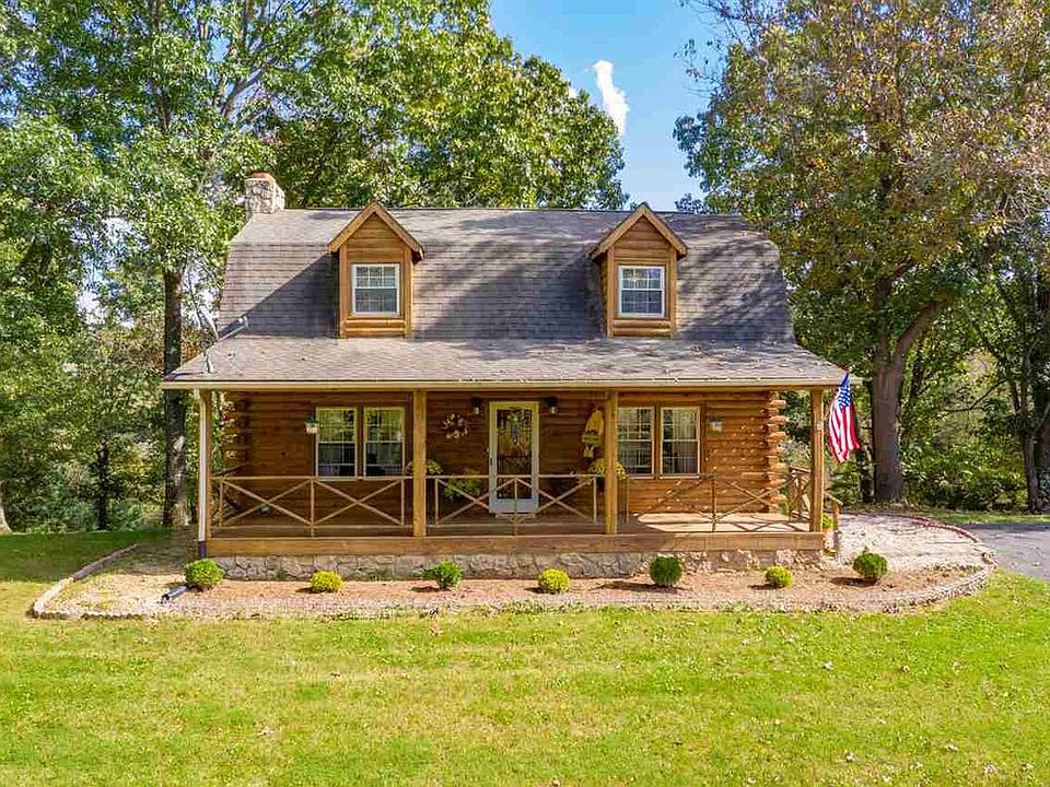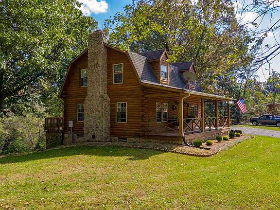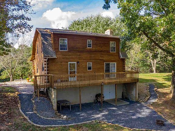 NEW PRICE! Perched on a hill just off Berry Farm Road is this delightful log style home on 7.97 acres with sweeping views over the nearby countryside. Situated in a private setting minutes to Staunton and all major highways. The wide welcoming front porch opens to a main floor of warm wood tones and natural light. Living room with large stone wood burning fireplace. Finishing out the main floor is a combination dining room/kitchen, 1/2 bath, & laundry. The floating natural wood staircase leads to the second floor with three bedrooms and a full bath. Full walkout basement w/woodstove is suitable for expanded living space. 18'x20' detached garage w/elec. New roof March 2019. Recently rebuilt stone chimney. See the list of recent upgrades.