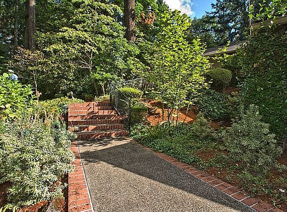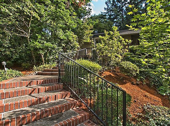 Mid-century modern beauty in quiet Lake Oswego neighborhood. Many original details preserved & refinished. Orig oak hardwoods, new plush carpet, retro/modern fixtures, stain glass windows, 3 fireplaces, slate entry. Big windows for incredible light. Updated kit retains vintage charm & opens to fam rm. Daylight basement. Large corner lot w/ lush, mature landscape for privacy.