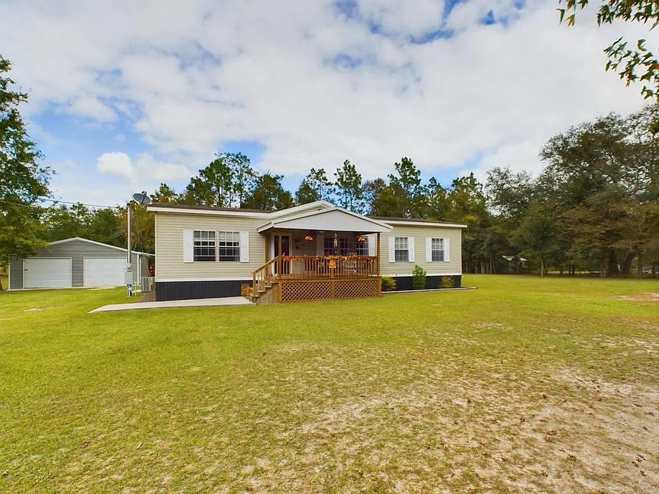 Welcome to this charming 4-bedroom, 2-bathroom home nestled on a generous 2-acre parcel of serene countryside in the heart of the county. This property offers a delightful blend of modern comforts, spacious living, and outdoor amenities, making it the perfect retreat for those seeking a peaceful, rural lifestyle. This home boasts four well-appointed bedrooms, providing ample space for your family or guests. The open split floor plan ensures privacy and convenience for all occupants. The heart of the home is the inviting eat-in kitchen, complete with stainless steel appliances and convenient bar seating. It's the perfect place for preparing delicious meals and entertaining friends and family. Conveniently located just off the kitchen, the laundry room offers practicality and easy access for your daily chores. The spacious master suite is a true oasis. The en-suite bathroom features double sinks, a separate shower, and a luxurious soaking tub. The master bedroom also boasts a large walk-in closet, providing plenty of storage space for your wardrobe and personal belongings. From the kitchen, step out onto the covered patio, where you can enjoy the tranquility of your expansive backyard. In the front of the house, a welcoming porch is the perfect spot for morning coffee or evening relaxation. The property features a 2-car metal detached garage with shelves and a dedicated workspace for DIY enthusiasts or those in need of extra storage space. Additionally, there is a metal carport for more covered parking or storage, ensuring your vehicles and equipment are protected. For even more storage solutions, a brand-new storage building is also included on the property. With 2 acres of land at your disposal, you have plenty of room to explore your outdoor interests, whether it's gardening, playing, or simply taking in the beautiful county scenery. This property offers a delightful mix of modern amenities and country living. It's an ideal home for those who value space, comfort, and the tranquility of rural living, all within a short drive to town. Don't miss the opportunity to make this beautiful property your home. Schedule a viewing today to experience its charm for yourself.