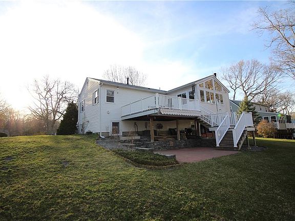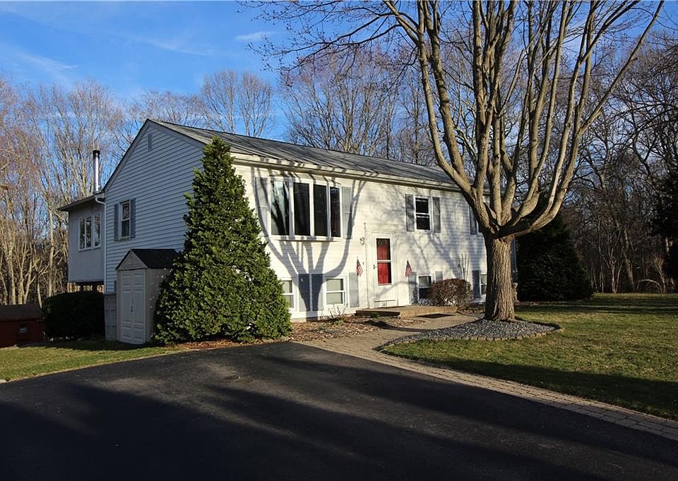 Beautiful, spacious, 3 bed, 2 bath raised ranch nestled in a quiet neighborhood. Quick access to the highway, while staying in a peaceful, wooded area. This home has brand new carpet throughout, fresh paint, central air, washer, dryer, new interior lighting and ceiling fans. Home also has an in-ground sprinkler system with an AutoBug cedar oil system and plenty of storage between the basement and a large shed/workshop equipped with light and electricity. The partially finished basement includes one large room and a full bathroom. Upstairs boasts 3 nice sized bedrooms, a full bathroom, and a large living space that opens into the kitchen with stainless appliances and a peninsula bar. Step out into the fantastic family room and warm up by the new wood stove, or walk out onto the large deck overlooking the back yard and patio - perfect for entertaining or nature watching. Take a walk through the back yard down to the trout-stocked pond.