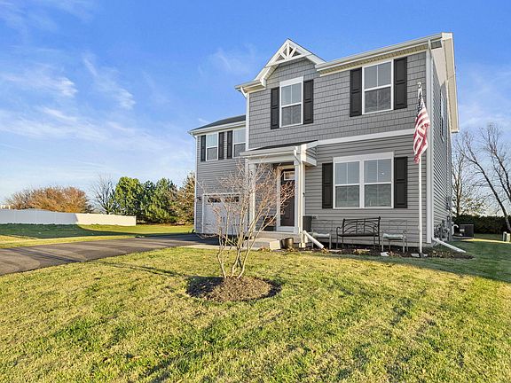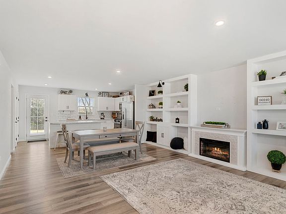 Welcome to your Eco-Friendly oasis in the in the desirable Prairie Ridge neighborhood! This beautifully updated 4 bed, 2.1 bath home is upgraded with Green features like solar panels on the roof, ensuring lower electric utility bills and a smaller environmental footprint. Upon entering, you'll be welcomed by a spacious open-concept main floor, perfect for entertaining and everyday living. The family room steals the show with its stunning wall of custom built-in shelving and cozy fireplace, creating a warm and inviting atmosphere. The updated kitchen is a chef's dream, with its white shaker-style cabinetry, a classic white subway tile backsplash, stainless steel appliances, and an island with seating. Additional main floor highlights include a trendy powder room with shiplap walls and a stylish new light fixture plus a handy pantry for all of the kitchen extras. Just off the kitchen, the back door leads to a private backyard and patio, offering breathtaking views of a wide expanse of undeveloped land and lush greenery-a perfect spot for relaxation and outdoor entertaining. You'll even have the perfect vantage point to watch the City of Hampshire's 4th of July fireworks from your own backyard! Upstairs, the master bedroom suite offers a serene retreat complete with an updated ensuite bath and a dreamy walk-in closet. The second floor also includes three more spacious bedrooms all with walk-in closets, an updated full bath, and the convenience of an upstairs laundry room. A deep-pour, unfinished basement with 9' ceilings and insulated walls provides endless possibilities for storage or future expansion-ready for your personal touch. Located just minutes from parks, schools, and downtown Hampshire, this home offers the perfect balance of modern updates and a tranquil setting. With easy access to highways, restaurants, and shopping, this home won't last long. Don't miss your chance to call this one yours! Run, don't walk! It's sure to go fast!