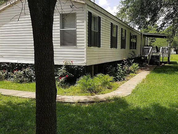 Very nice mobile home on .3 acres in town, this home is high and has never flooded. 3 bed 2 bath mobile home on 1/3 of an acre lot. Neighborhood is very quiet and the surrounding homes are all well maintained. Walking distance to school and library. Includes a 10x16 storage building. Home is a 16x80 single wide manufactured in 2007 by Palm Harbor with a wind zone II rating. Original cabinets in kitchen and master bathroom were removed and custom cabinets built with many large drawers for plenty of storage. Pantry door is chalkboard for making shopping lists or reminders. Master bath has large walk-In closet and shower. Glamor bath was removed to allow washer and dryer installation allowing a huge pantry in the kitchen. Central HVAC system is ducted through the ceiling. Home was re-leveled in 2018 after Harvey and new road base put on driveway. Motivated owner, cash only 817-240-6112
