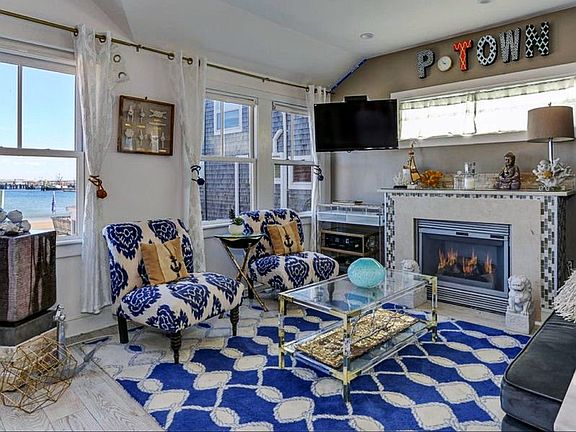 This free-standing, waterfront cottage offers an ideal downtown location. It is in the Center of Town on Commercial street with Provincetown Harbor as the backyard. Located within walking distance from the Ferry, shops, bars/restaurants and local attractions. This home has a reverse floor plan to take advantage of the wonderful water views. The bedrooms and bathroom are on the 1st and the living/cooking/dining open concept space is on the 2nd floor. The bedrooms are light and bright with water views. The recently renovated bathroom has a Carrara marble vanity and Travertine tile shower. White-washed, wood panel porcelain tile throughout gives the home a “beachy” feel. The kitchen has granite counters, sub-zero wood panel refrigerator, and Bosch appliances. The gas fireplace with glass tile and marble surround is a nice added touch to the living space. There is a private patio for outdoor entertaining, cooking, and eating. The common area deck leads right to the Provincetown Harbor beach.