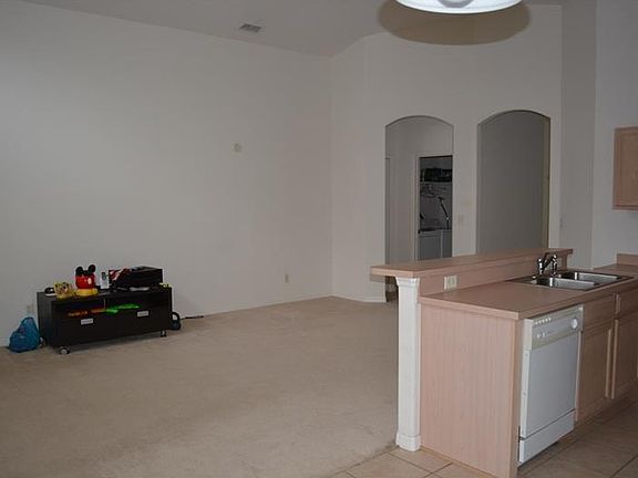 Well maintained 3 bed 2 bath house close to I-4, movie theatre and shopping centers. Home a spacious formal living area with a dining room combo. The other living room over looks the kitchen which has an eat in kitchen space along with a bar seating area for a quick bite. The large master suite has a sliding door to the back yard for the night you want to see the stars from your bed. The master bath has dual sinks, a large walk in closet and a garden tub which is a nice touch for those long days at work. There are two small open patio areas one is on the side of the home and the other in the back yard. A good catch is that there are no rear neighbors. This home is zoned for short term rental and close enough to get to Disney.
