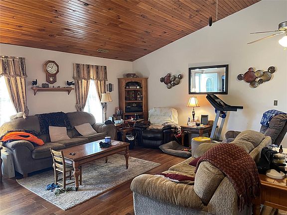 Large home all on one level built in 2007. Split bedroom floor plan. Large primary bedroom, primary bathroom and big walk-in closet on one end and two bedrooms and full bath on the other end. Living room, kitchen and dining area all one room and open with tongue & groom vaulted ceilings. Oak cabinetry in the kitchen. Laundry/utility room with a laundry sink, storage and a walk door to outside. Covered front porch, covered back deck and small covered stoup on the end. 30X50X16 metal workshop with 12x12 door, concrete floor and 110/220 electric. Two additional storage buildings and a detached carport. Wooded acreage on both sides of the county road. Nice size pond. Located on a dead-end road. Property is being sold As-Is as seller will make little to no repairs. 5 acres will be deeded off at closing. Not far from Current River, Clearwater Lake and Echo Bluffs.