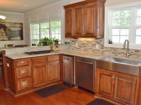 Gorgeous kitchen boasts custom cabinets, granite countertops, glass tile backsplash, Kohler sink with instant hot water, stainless steel appliances, and breakfast bar open to dining area. Home features 2 master suites, one on each level, each with en suite bath with stunning Kohler fixtures, separate baths and showers, ceramic floors, and granite countertops. This property is ideal for keeping horses, with nearly 10 acres and a barn with 4 horse stalls and tack room.