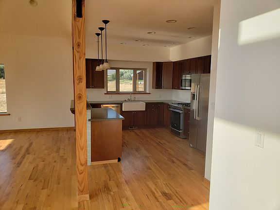 Well designed Northwest style home w/2613 SF on 3 irrigated acres! The home was built for energy efficiency-ICF form construction w/Heat pump (Heat and AC) & Extra filtration. Vaulted great room has western views w/floor to ceiling windows & Impressive fireplace for cozy wood heat! Oak floors through main floor. Kitchen w/island, Farm sink, w-in pantry & All SS appliances inc. Main floor master w/tile shower w/heated slate flr. Location is quiet, Peaceful, w/excellent views & lots of wildlife!