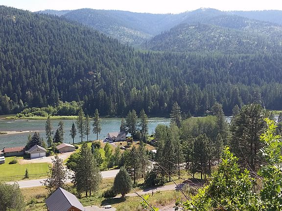 Built 2003 finished January 2004, 10 miles out on Hwy 37 Libby MT 1740 sq feet, 4.02 acres and backed by Forest Service, beautiful view of the river, 3 bedroom, 2 bath, walk in closet in master bedroom, open floor plan, in the banana belt (hardly any snow) driveway usually only needs plowed 2 to 3 times a winter or less, long growing season if you like gardening, hunting access, not far from the reservoir, scenic drive into town. You can have 2 horses, but I have had 3 and nobody complained. House is 30x58, Livingroom 17'4"x19'6" plus entry areas to rooms and front door, Kitchen 12'3"x14'3", Dining/Entry 11'7"x17'8" including 3'x11'9" snackbar, Master Bedroom 16'6"x14'6", Walk in Closet 7'x7;10", Master Bath 9'x7'10", Laundry 7'10"x12'3", 2nd Bedroom 11'3"x13'5" plus 4'8" standard closet, 3rd Bedroom 11'x11'6" plus a tad bit more in entry also has a removable reload bench and 4'3" standard closet, Main Bath 6'x10'2" w/ 3'x1'x6'8" linen cabinet, dining/entry and master bedroom have french doors, livingroom has the front door and there is also a door in the laundry room. Stamped concrete patio in front. Stamped concrete sidewalk and pad in the back.