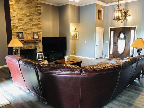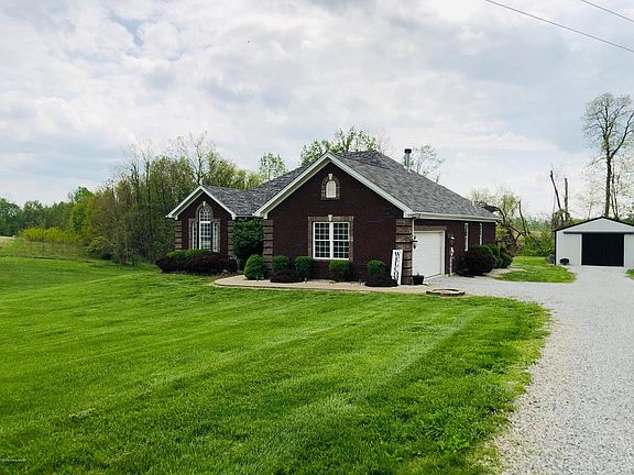 This magnificent, contemporary style home consisting of more than 3700 sqft of finished living space is situated on 21 beautiful Trimble Co. acres. This home is only 14 years young and features a wonderful living room with 12' ceilings, floor to ceiling stacked stone fireplace & walkout to a covered rear porch, deck and above ground pool. There is a nicely appointed kitchen with SS appliances, center island, lots of cabinets and a pantry for extra storage space. The main floor also features 3 BRs including an impressive master suite with tray ceiling and a spectacular master bath with his & her sinks and closets, a beautiful subway tiled glass enclosed shower and whirlpool tub. The downstairs will blow you away. There you will find an expansive family room, gaming area, workout area, bar area and plenty of storage space. Outside you will find two awesome garages with concrete floors and electric. One garage is 24' X 30' and the other is 30' X 50'. Homes like this don't come on the market everyday!! Call today for your private showing!! You won't be disappointed!!