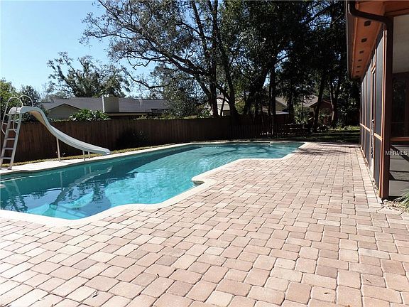 COLUMBUS HARBOR- WOW This home is CHARMING with a HUGE 40' swimming pool and BIG private fenced back yard! Open floor plan with high ceilings in the great room which wraps around the dining, nook and kitchen. Floor to ceiling stone fireplace with side french doors leads to the lanai and pool. Beautiful new wood flooring throughout this home with tile in the kitchen, nook & laundry. The pool and back yard are A+++. The 40' x 20' pool has a slide & diving board, paver deck and was recently resurfaced. THIS IS A REAL POOL! The BIG shady back yard has room for soccer games, play equipment and tons of privacy. There is a shed for your lawn equipment tucked off to the side freeing up your garage for the work bench and cabinetry. This lovely communtiy has a boat ramp on ski-able Lake Fairy and lighted tennis court. In addition to the new wood flooring this home has a new water heater, was recently re-plumbed, ceilings textured & new paint throughout. This much loved home is move in ready.