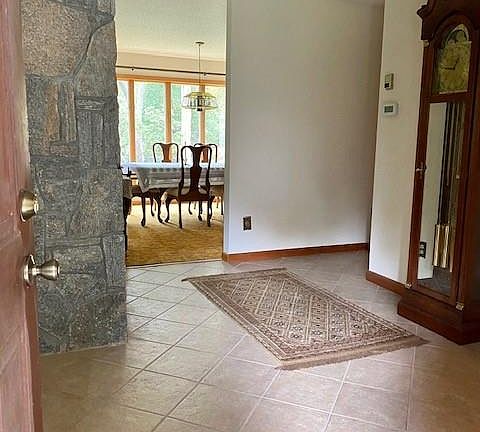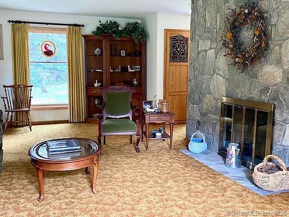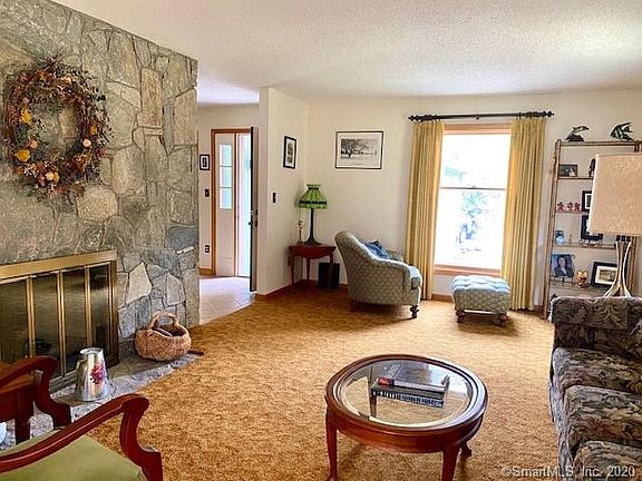 This contemporary gambrel has been built and lovingly cared for by its owners for almost 40 years. This home has 3 bedrooms and 1 and 1/2 baths. The large foyer opens up to a very large living room with a central fieldstone fireplace that is the heart of the house. A south facing dining room has a bay window that brings in tons of light to the first floor. Beyond that the kitchen has new appliances and a breakfast nook and then leads by the powder room and mudroom to a large family room with another wood-burning fireplace. Sliders from there bring you to a new deck and a gorgeous flat, green back yard, stone walls and wildlife. This home is heated with an efficient electric heat pump and central air conditioning system and has a backup wood/coal burning system that can be hooked back up. The basement is clean and dry and can have many uses. This 8.93 acres may be sub-dividable in the R-40 Zone. There are three city sewer connections in the street (the present house is utilizing one). No tests have been done. You may find this listing under MLS # 170346077 for land as well. Property is close to Beebe Pond, Beebe Cove, the Mystic River and Noank Village as well as downtown Mystic.