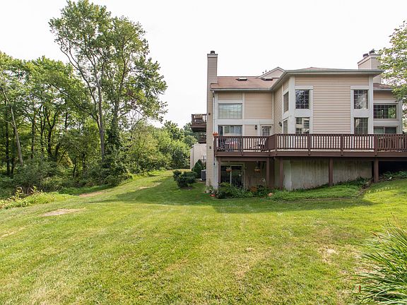 Two Story End unit located in the desirable Brookwood Community. Private rear location with views overlooking woods and stream which can be enjoyed from the Great room as well as the deck. You enter into the inviting, bright two story tiled foyer. Once upstairs you will be greeted by a grand great room, beautiful neutral color, newer Pergo flooring, vaulted tongue and groove wood planked cathedral ceilings with skylight. The focal point of the room is the floor to ceiling stone fireplace. The bright kitchen offers a newer stainless steel dishwasher, range and microwave. Main floor bedroom offers new carpet, custom closet maid organization, along with custom built in shelving and cabinet in wall nook. Next to main floor bedroom is the full bath that was recently remodeled with new tiles floors, new sink, vanity and mirror, new light fixtures, new bath tub and toilet. The master bedroom offers great natural lighting, vaulted ceilings, palladium window, ceiling fan and plenty of closet space. The master bath is newly remodeled with tiles floors, sink, vanity and toilet, shower stall and glass shower doors. This home has been well cared for. HVAC unit was completely replaced last year.