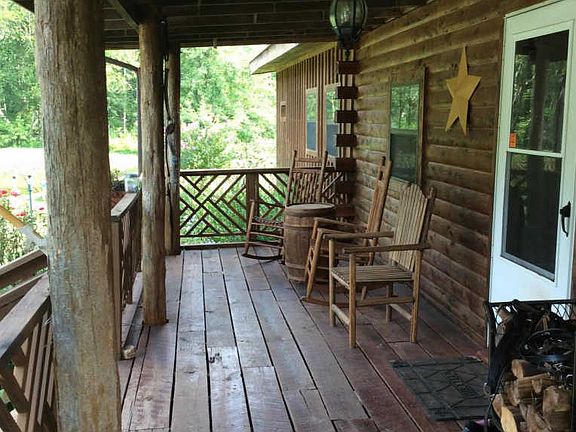 Log Cabin on 35.83 acres, above ground pool, large deck with built in seating, extra large carport with plenty of room for cars, farm equipment and/or ATV's, 2 storage buildings with electricity, chicken coup, run in shed for animals, creek, springs, 2 ponds, 2 pastures and woods galore! This is peaceful country living at its best!