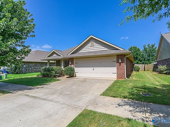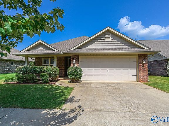 Newly installed flooring (2022) and features a large living room, upgraded kitchen with modern backsplash! Great open floor plan with smooth trey ceilings, stacked stone gas log fireplace! Pre-wired for media, perfect for entertaining! Kitchen feature stainless steel appliances and pantry. Isolated master suite with trey ceilings, soaking tub & separate shower. Covered rear porch. Privacy fenced backyard! HOA offers pool, clubhouse, fitness center, tennis, basketball, volleyball courts and more! All Appliances that remain with property to include refrigerator, washer & dryer. Located conveniently near Bridge Street, movie theater & shopping malls. 4 miles to Redstone Arsenal Gate 7!!