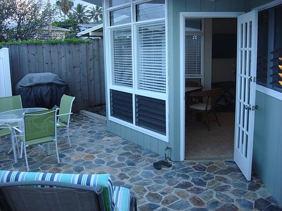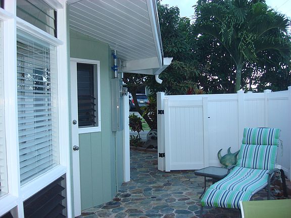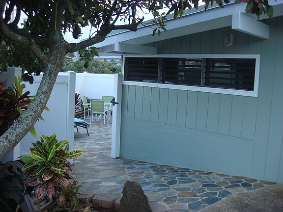 Kalaheo Hillside is close to the beach yet just high enough to be cooled by the onshore breeze. It is always in high demand due to its location in the excellent Aikahi School district as well as being very close to the Marine Core Base. Iliaina Street happens to be in the very best part of Kalaheo Hillside. It is one short block from the bus stop on Mokapu which is also a quick connection to the H3. From the house you can walk to both the beach and the Aikahi Shopping center. On a quiet night you can actually hear the sound of the breaking waves. This large unfurnished 700 square foot remodeled rental is completely self sufficient including separate areas for the kitchen, bath, large bed and living. It is separated from the main house providing its own entrance and privacy. Appliances include: Refrigerator, Microwave, Oven, Stainless Sink, Washer/Dryer. A large enclosed outdoor patio has its own private entrance and room for outdoor dining and sunbathing. The bath is modern with large shower and travertine tile. Dedicated off street parking is located right in front of the entry. Windows fill the unit with light and a ceiling fan provides circulation when the trade winds are not blowing. An outside shower is conveniently located for washing off the beach sand and toys. It is set on a large 10,000 square foot lot filled with beautiful Hawaiian flora, green grass lawn and fruit trees. This unique home has great curb appeal in a great location. We are looking for a great tenant to match. The home is now available for viewing. No Pets/No Smoking Rent = $1,750/month + GETax - (Utilities not included) $1,750/month + GETax, (Utilities not included)
