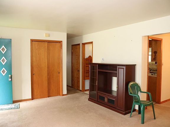 3 Bedroom, 1 bath ranch with 2 car garage in Mapleton on level lot with large yard. Full basement, newer oil furnace boiler, some windows are thermopane, roof and garage doors replaced about 7 yrs ago. washer and dryer in basement with electric range used for summer canning. Newer garage door openers, concrete garage floor. 3 season porch off kitchen. Yard has paved area for picnic table that is included in basement.